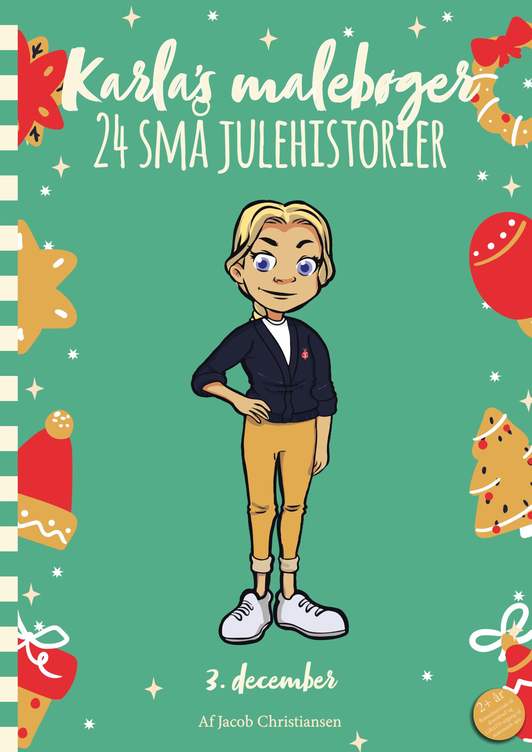 Endnu tilføjelse til serien Karlas Malebøger! Karla har skrevet 24 små historier, der handler om jul, hendes venner Kvik og Anna og hendes tvillingebror Hr. Klogemand. Der er lavet en lille historie for hver dag fra. 1. december til 24. december, som skal læses op af en voksen – og så skal alle børn lave en tegning bagefter.