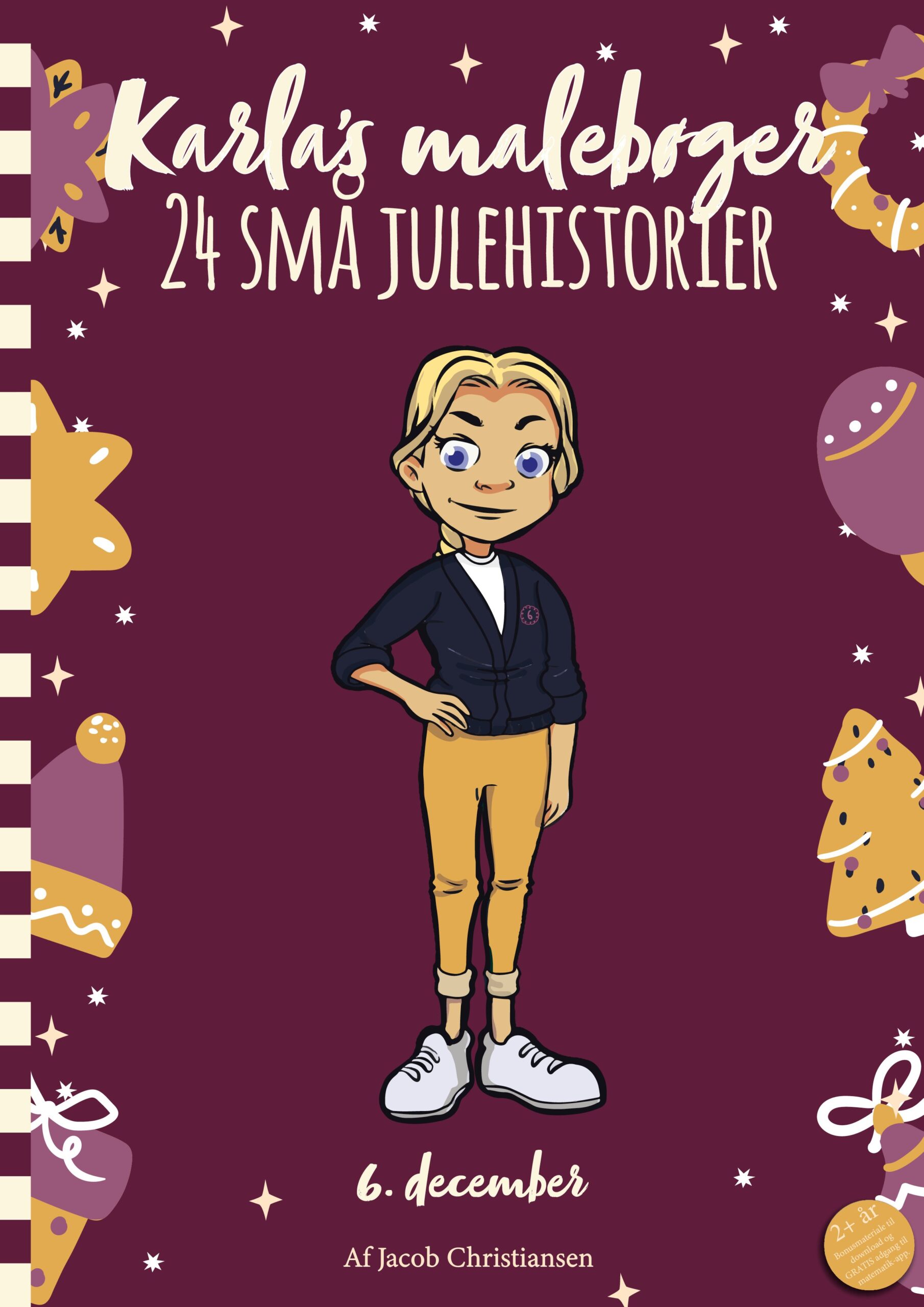 Endnu tilføjelse til serien Karlas Malebøger! Karla har skrevet 24 små historier, der handler om jul, hendes venner Kvik og Anna og hendes tvillingebror Hr. Klogemand. Der er lavet en lille historie for hver dag fra. 1. december til 24. december, som skal læses op af en voksen – og så skal alle børn lave en tegning bagefter. Så det er ikke en malebog, men en tegning der skal laves med 100% kreativitet. Det skal selvfølgelig handle om julen, og alt hvad historierne handler om. Historierne er en dejlig måde at sprede julestemning på og samtidig opmuntre børn til at udforske deres kreativitet. Julen er en tid fyldt med farverige og ikoniske motiver, så det er perfekt til farvelægning, tegning og meget andet hyggeligt. Og så kan tegningen klippes ud bagefter og bruges som julegave. Der er endda til og fra kort på.